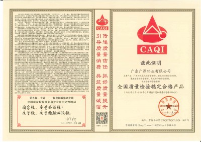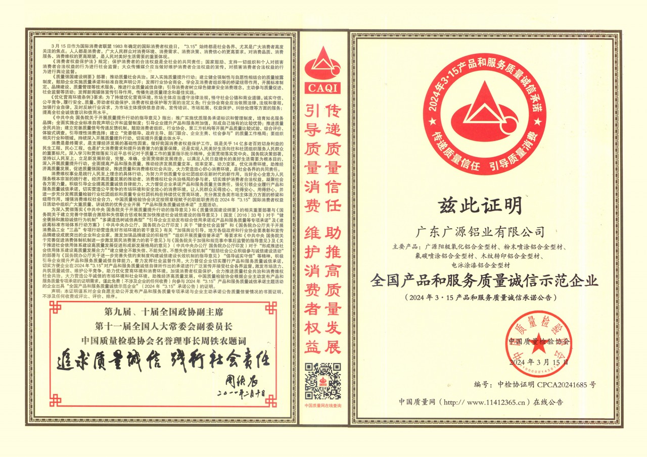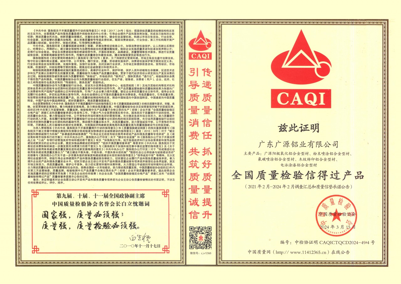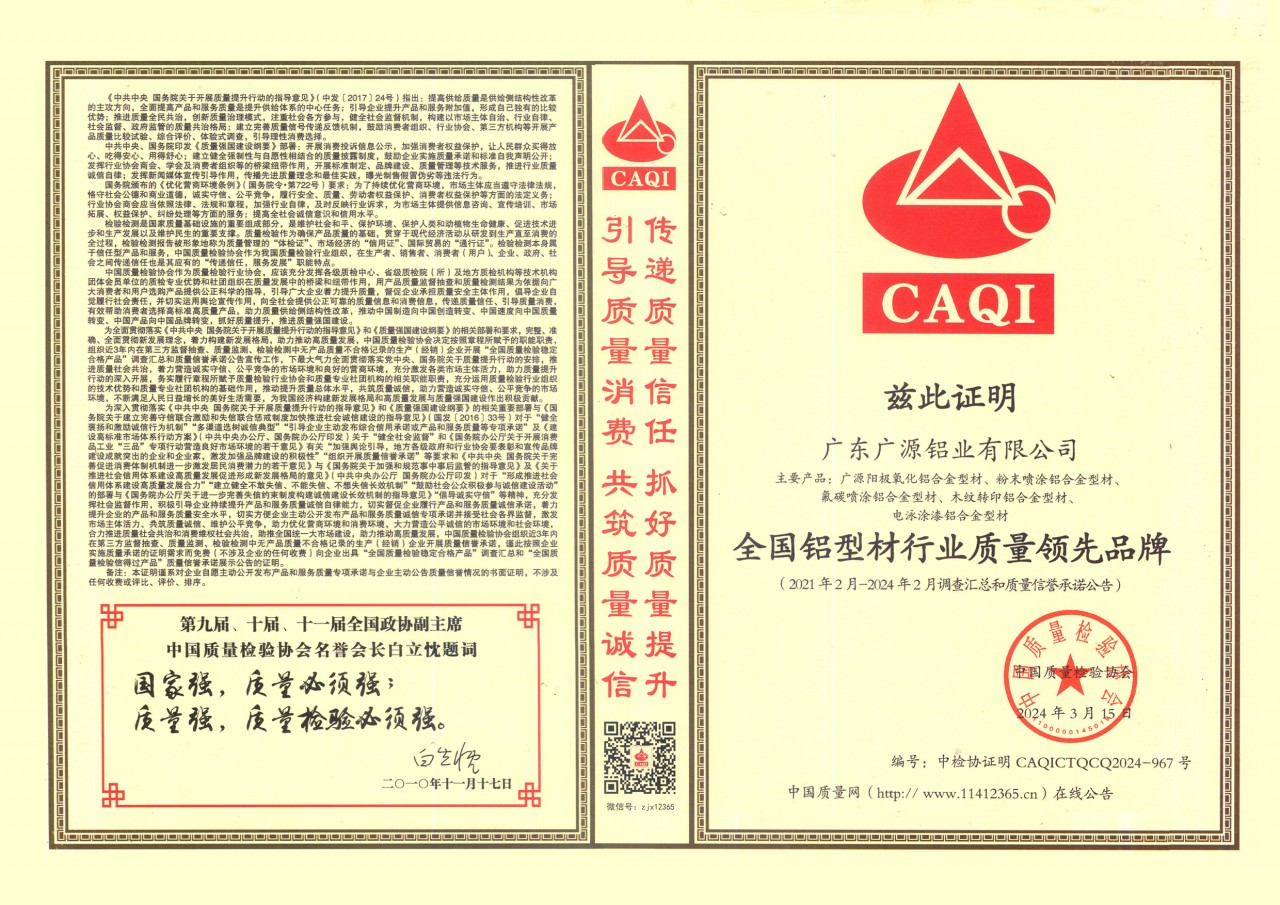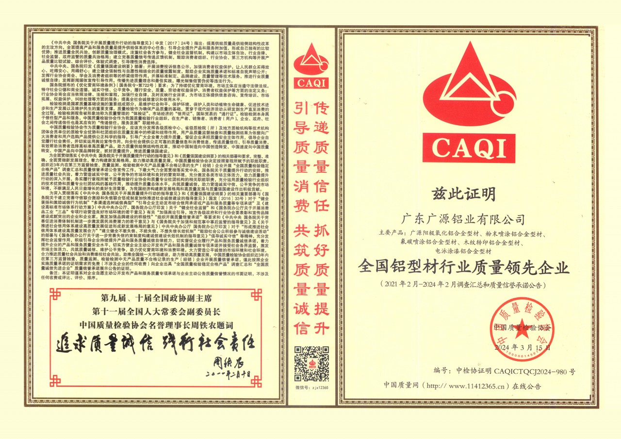 廣東廣源全國(guó)鋁型材行業(yè)質(zhì)量領(lǐng)先企業(yè)