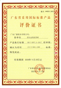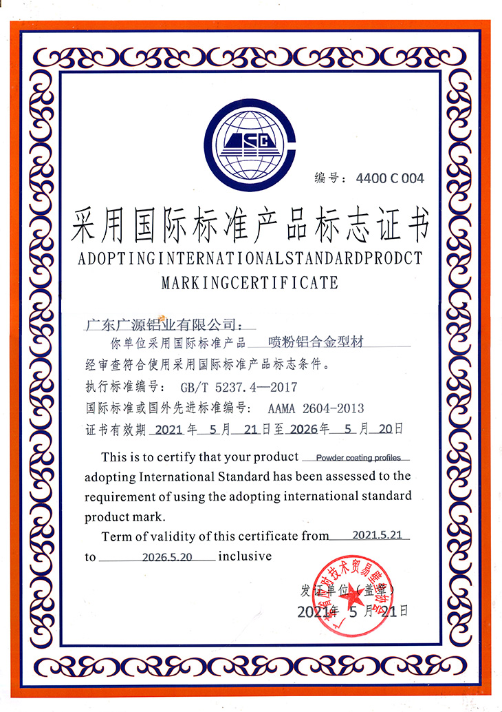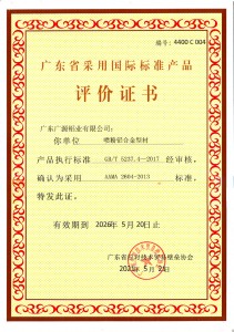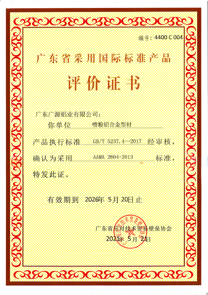 噴粉鋁合金型材評(píng)價(jià)證書(shū)