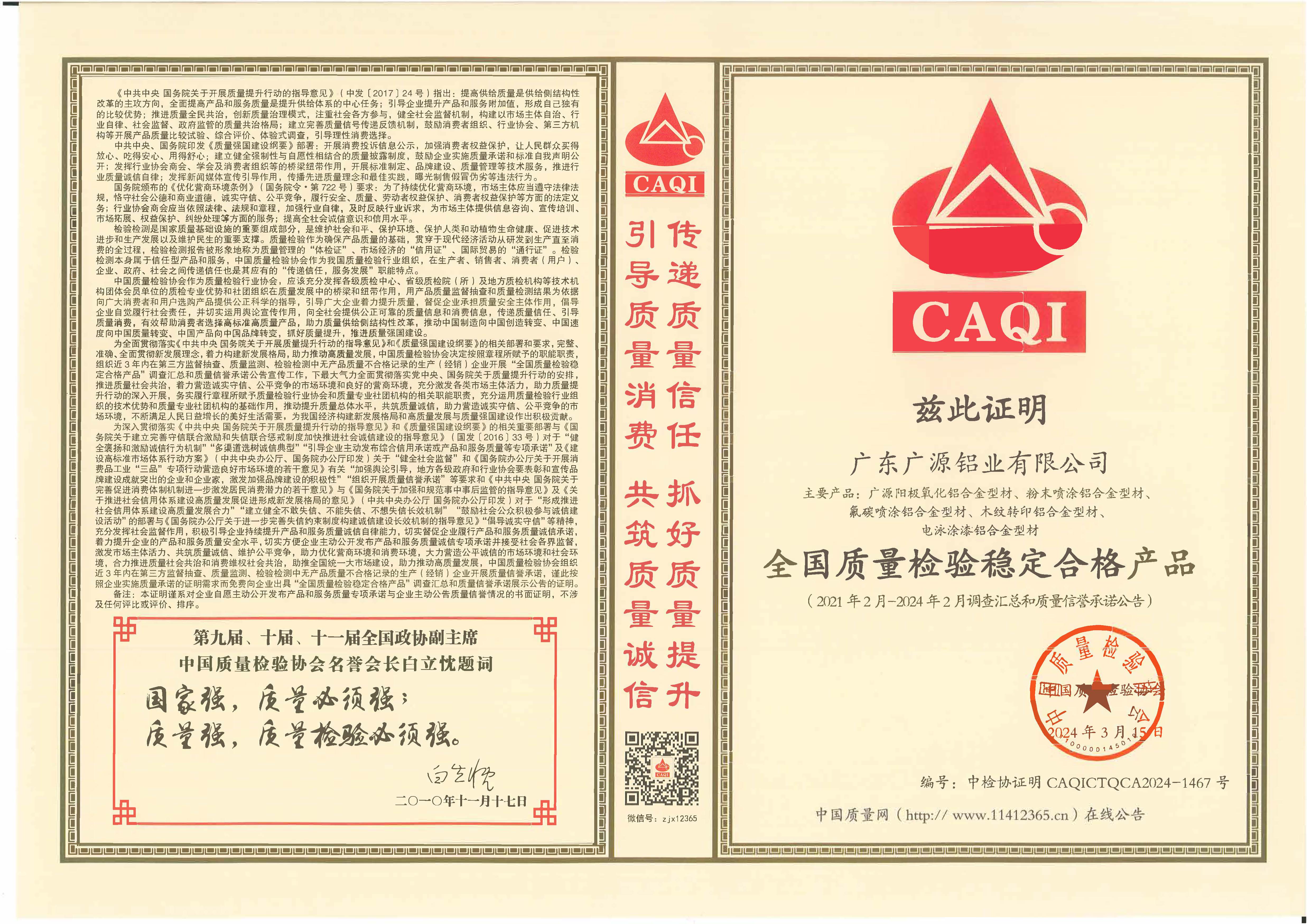 全國(guó)質(zhì)量檢驗(yàn)穩(wěn)定合格產(chǎn)品